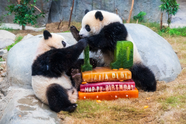 首對(duì)港產(chǎn)大熊貓“加加”“得得”慶生記